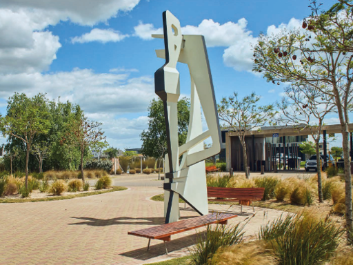 Una araña hecha a partir de luminarias urbanas; el ruso Victor Shlovsky llamaría a eso un gesto de extrañamiento. La buena literatura está construida a partir de ese mismo proceso. La escritora Silvina Bullrich llamaba a los cables negros que colgaban del ascensor de su casa «las grandes serpientes» y a los firuletes en las rejas antiguas «los anzuelos». ¿Cómo ver por primera vez lo que vemos siempre? ¿Cómo sacar a nuestra mirada del modo automático? ¿Cómo quitarle las cataratas a la visión, cuando un día cualquiera no diferenciamos entre el sillón, el florero y nuestra familia? Regalar una nueva mirada es lo que Eugenia Calvo intenta producir en sus obras. No es la primera vez que la artista crea una imagen desconcertante a partir de algo cotidiano: las luces de la calle se agrupan formando la cabeza y el abdomen de un bicho inmenso, unos arcos de hierro simulan sus patas. Es una idea eficaz porque te lleva al desarreglo inmediato de los sentidos: de golpe, las grúas de la municipalidad que trabajan en la calle, se vuelven pterodáctilos; no las habíamos visto antes, pero ahora no podemos dejar de verlas. Calvo no se limita a dar sorpresas; de ser así, su arte no duraría más de una primera aproximación. Hay algo de la tradición gótica de lo inquietante en lo familiar, que también atraviesa sus obras. Los muebles de una casa que arman una barricada, un muestrario policial de palos, cachiporras y garrotes, un puré de papas que se transforma en nube ominosa. Son pasillos de la mente, que se cubren de objetos embrujados. La araña de Calvo no está sola, pertenece a una familia de artrópodos famosos: la inolvidable araña de patas peludas que aparece en el cuento de Felisberto Hernández El balcón; la araña Maman de Louise Bourgeois, cuyos finos hilos acunan nuestra psiquis o, como escribía Emily Dickinson: «La Araña como Artista que nunca ha sido contratada/si bien su Mérito sin par/está de sobra confirmado». Las cosas, como se nos aparecen y no como sabemos que son. El arte de Eugenia Calvo es un buen antídoto para el riesgo permanente al que estamos expuestos: el de tomar al mundo y a nosotros mismos por sentado.