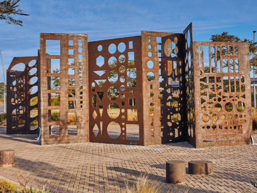 Estructura de acero y luminarias urbanas