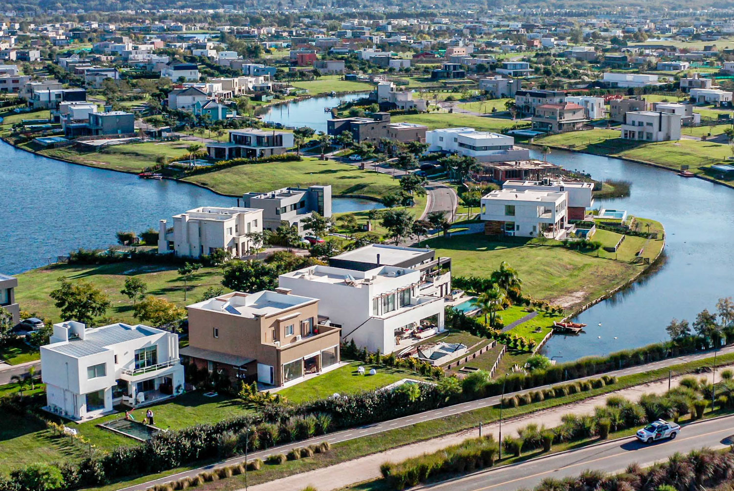 En el km 45 de Panamericana ramal Escobar. Tomando un cómodo acceso por avenida de Los Lagos de 4 kilómetros y dos vías por mano, completamente asfaltado e iluminado.